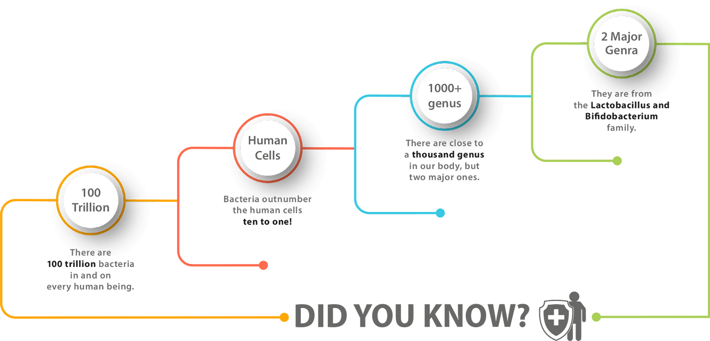 Good bacteria help us in absorbing nutrients, destroying disease-causing cells and building our immunity to maintain a healthy life. Our bodies are home to an estimated number of 100 trillion good bacteria that reside in our gut. These helpful bacteria act as protectors and are extremely beneficial to our bodies.